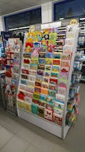 Drehständer mit Karten, Stickern, Taschen, Partyballons, Partykerzen, Nummernkerzen